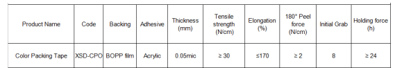 The color sealing tape is a biaxially oriented polypropylene film as the base material, and a layer of color pressure-sensitive adhesive is evenly coated on one side of the base material, referred to as “color ribbon”