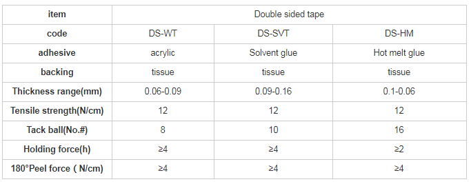 Solvent double Sided Tissue Tapes are made from non woven-tissue paper coated on both sides with acrylic adhesive or hot melt rubber adhesive and laminated with release paper.
